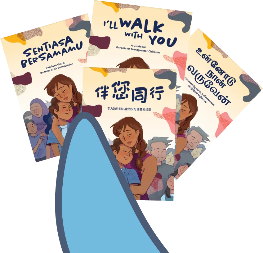 I’ll Walk With You is a comprehensive resource guide for parents of transgender children and is available in all four of Singapore’s official languages – Malay, English, Chinese and Tamil.