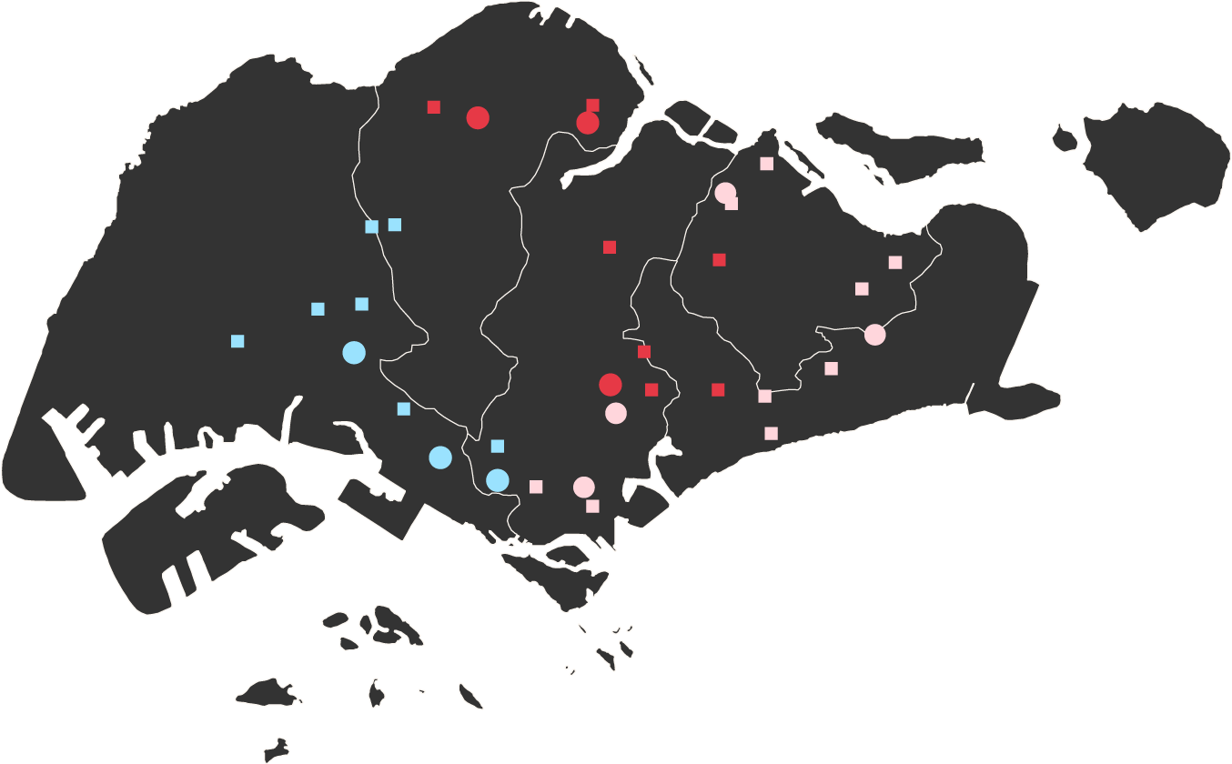 Hospitals Changi General Hospital KK Women's and Children's Sengkang General Hospital Singapore General Hospital Community hospitals Bright Vision Community Hospital Outram Community Hospital Sengkang Community Hospital Polyclinics Bedok Polyclinic Bukit Merah Polyclinic Eunos Polyclinic Marine Parade Polyclinic Outram Polyclinic Pasir Ris Polyclinic Punggol Polyclinic Sengkang Polyclinic Tampines Polyclinic