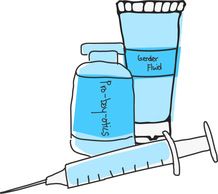 Testosterone (T) is the main sex hormone used in medical transitions to masculinise the body. It is responsible for and determines the body’s secondary sex characteristics, much like estrogen and progesterone in women.